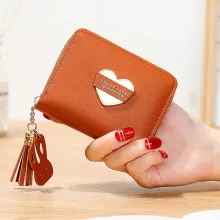 Introducing our latest addition to your essentials - the Heart Pattern Leather Mini Wallet. This compact yet stylish accessory is designed to blend seamlessly into your daily routine while adding a touch of personality. Crafted from high-quality PU leather and adorned with a charming tassel zipper, it's more than just a wallet; it's a statement of fashion and function.