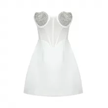 Our Strapless Sweetheart Crystal Mini Dress is not just a piece of clothing; it's a statement of elegance and confidence. Designed for the modern woman who loves to stand out, this dress is best worn at weddings, parties, or any festive occasion. The combination of its flattering fit, romantic neckline, and minimalist design makes it special. It's more than just a dress—it's an experience in fashion, empowering you to feel your best.