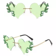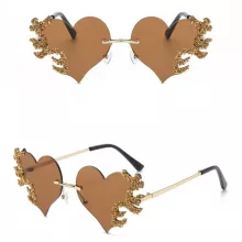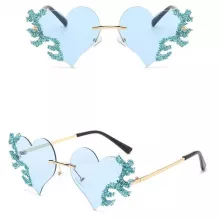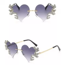 Our Heart-Shaped Rhinestone Sunglasses stand out with their unique design and luxurious embellishments. The rimless heart shape adorned with sparkling rhinestones captures the essence of luxury and fashion. The sunglasses feature multiple optical attributes - gradient, photochromic, anti-reflective, and UV400 protection, ensuring not only style but also comfort and eye protection. The lightweight alloy frame combined with high-quality polycarbonate lenses promises durability and a comfortable fit.
