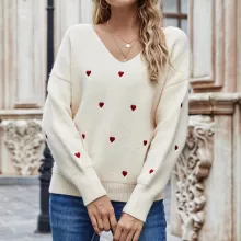 Elevate your winter wardrobe with our V Neck Embroidery Heart Sweater. Its combination of comfort, style, and quality craftsmanship makes it a standout piece you'll reach for time and time again. Don't settle for ordinary sweaters – embrace warmth and charm with our irresistible knitwear.
