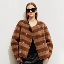Use our battle tested marketing materials for Trendy Patchwork Wool Fleece Coat for Women