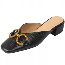 Use our battle tested marketing materials for Summer Leather Sandals for Women: Low Heel, Toe-Cover Mules with Chunky Heel & Metal Decor