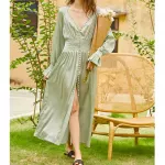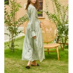 This robe dress is ideal for summer days and nights, offering both comfort and style. Its light green hue, combined with the elegant silhouette, makes it suitable for weddings, garden parties, brunches, or any event where you want to make a graceful statement.