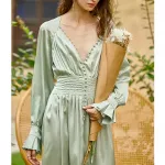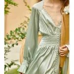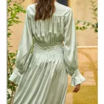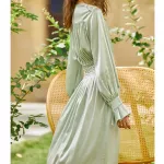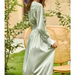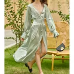 Embrace the epitome of French vintage charm with our Elegant Light Green Satin Robe Dress. Designed for the modern woman who appreciates the allure of classic elegance, this casual yet sophisticated piece is perfect for a variety of occasions. Whether you're attending a daytime event, enjoying an evening out, or simply seeking a touch of luxury in your daily wardrobe, this dress offers unparalleled versatility and style.