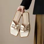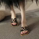 Embrace Elegance and Comfort with Our Summer Square Toe Leather Slippers