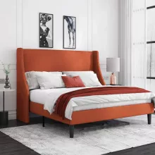 Whether upgrading your bedroom furniture or setting up a new home, our platform bed frame stands out with its blend of functionality and chic design. The dense foam padding not only adds comfort but enhances the feel of luxury. The wingback headboard provides excellent back support for reading or relaxing in bed, making it ideal for everyday use.