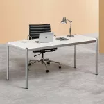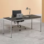 - Premium Office Desk: Designed to enhance any office space, the Modern Chrome Writing Desk boasts clean lines and an iconic chrome frame that effortlessly complements any decor.