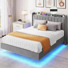 This bed frame isn't just furniture; it's a lifestyle upgrade. The floating design provides a sleek, off-the-ground look while ensuring stability with strategically hidden support legs that prevent the unpleasant shocks of toe stubbing. The headboard is not just for looks—it comes padded for comfort and includes built-in charging ports (1 USB and 1 Type-C), making it easy to keep your devices powered up without leaving your bed. Additionally, the bed features an LED RGB light strip around its base, offering adjustable ambience with over ten thousand color options, all controllable via a user-friendly app or a handy remote.