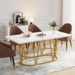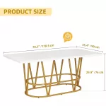 Introducing our stunning 70.3" Modern Dining Table with Faux Marble Top and Gold Geometric Legs. Designed to be the centerpiece of your dining room, this table effortlessly combines style, functionality, and durability to enhance your dining gatherings.