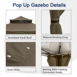 - Multiple Drain Holes: Top cover includes multiple drain holes to prevent water accumulation and extend the lifespan of the gazebo.