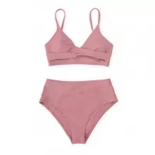 Use our battle tested marketing materials for Sleek Black High-Waist Bikini Set with V-Neck Twist