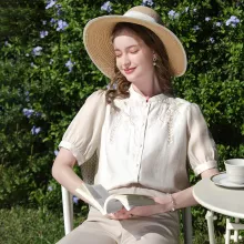 Use our battle tested marketing materials for Elegant Silk Blend Chinese Style Puff Sleeve Blouse