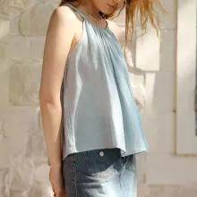 Use our battle tested marketing materials for Vintage Blue Striped Linen Halter Crop Top