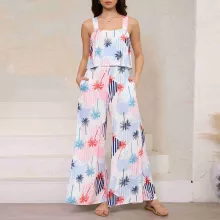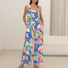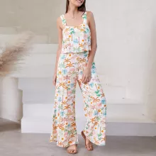 Use our battle tested marketing materials for Chic Paisley Print Wide Leg Jumpsuit with Suspender Top Set - Women's Streetwear