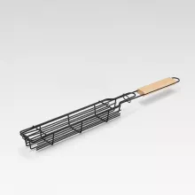 The BBQ cage is expertly crafted from high-quality stainless steel to deliver long-lasting durability and consistent performance. Its compact yet spacious grill net rack can hold a generous amount of ingredients, ensuring your grilled feast is evenly cooked to perfection. The lightweight yet robust wooden handle allows for easy maneuvering and flipping, giving you precision control over the grilling process.