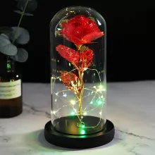 Illuminate your special moments with the timeless beauty of the Eternal LED Rose in a Glass Dome. This exquisite decorative piece brings a touch of elegance and romance to any setting, making it the perfect gift for weddings, anniversaries, Mother's Day, or simply as a heartfelt gesture for someone special. The meticulously crafted artificial rose, encased in a delicate glass dome, is enhanced by soft LED lights that create a mesmerizing glow, adding warmth and charm to your home decor.