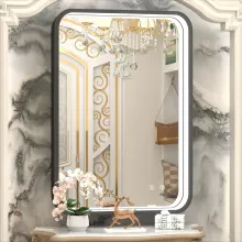 Experience the perfect blend of functionality and elegance with our Black Metal Frame LED Bathroom Mirror. This wall-mounted makeup mirror is designed to elevate your bathroom experience, providing you with optimal lighting and a sleek, modern look. Whether you’re getting ready for a day at the office or a night out, this mirror ensures you always look your best.