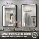 - Anti-Fog Function: Enjoy a clear reflection even after a hot shower. The anti-fog feature can be turned on or off as needed and has a one-hour automatic shut-off for energy savings.