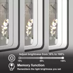 - Dimmable Lighting: Adjust the brightness of the mirror light from 10% to 100% with a simple long press on the light switch button. The built-in memory system remembers your preferred settings.