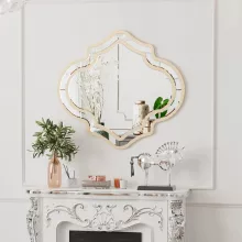 Elevate the style of your home with our stunning Modern Farmhouse Wall Mirror with Golden Rim. Measuring 30"x35", this decorative accent mirror is designed to add a touch of sophistication and modern charm to any room. Its unique silver finish with a light golden rim brings a sense of luxury and elegance, making it the perfect focal point in your living room, bedroom, or bathroom. The irregular shape and high-quality materials ensure this mirror stands out, providing both functionality and aesthetic appeal.