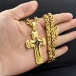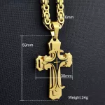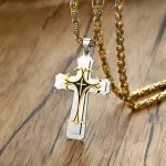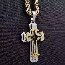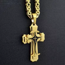 Discover the perfect blend of style and spirituality with our Stainless Steel Cross Pendant Necklace. This exquisite piece features a stunning cross pendant, meticulously crafted from high-quality stainless steel and adorned with a luxurious gold plating. Whether you're looking for a meaningful gift or a statement piece for yourself, this necklace is sure to impress with its timeless design and exceptional craftsmanship.