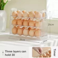 Transform your kitchen organization with the Auto Flip Egg Organizer, a 3-tier holder designed to store up to 30 eggs. Crafted from durable, food-grade PET material, this egg holder ensures your eggs stay safe, fresh, and easily accessible. Perfect for the refrigerator side door or countertop, this egg container is the ultimate solution for efficient and tidy egg storage.