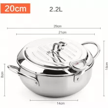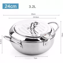 Upgrade your kitchen with the Japanese Stainless Steel Deep Frying Pot, designed to make your frying tasks easier, safer, and more precise. This deep frying pot comes with a built-in thermometer and a lid, ensuring you achieve the perfect temperature for all your frying needs. Whether you're making tempura, fries, or any of your favorite fried dishes, this pot guarantees consistent results.
