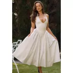 Don't miss out on the opportunity to elevate your style with our Elegant White Sleeveless V-Neck Pleated Summer Party Dress. Its timeless design and flattering fit make it a must-have for any fashion-forward woman. Step out with confidence and grace, knowing that all eyes will be on you. Order yours today and embrace the elegance and charm of this stunning dress.