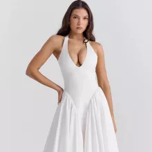 Step into the spotlight with our Elegant White Sleeveless V-Neck Pleated Summer Party Dress. Designed for the modern woman who wants to make a statement, this chic dress combines sophistication and allure, making it the perfect choice for any summer event. The deep V-neck and sleek silhouette enhance your natural beauty, while the pleated design adds a touch of elegance. Whether you're attending a party, a special occasion, or a night out on the town, this dress ensures you'll be the center of attention.