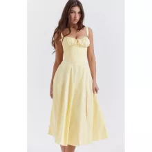 Step into the spotlight with our stunning Retro French Style Yellow Midi Tank Dress. This exquisite piece captures the essence of French chic with its ruched bow chest and corset-inspired design. Perfect for those who appreciate vintage charm with a modern twist, this dress is a must-have for your summer wardrobe.