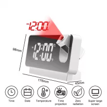 Transform your mornings with the 180° Rotation LED Projection Alarm Clock. This modern, versatile alarm clock is designed to enhance your bedroom or bedside with its unique projection feature, allowing you to view the time on your wall or ceiling effortlessly. With its sleek design and multifunctional capabilities, it's the perfect addition to any room.