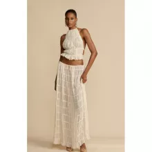 This set is more than just an outfit; it's a statement. The backless cropped halter top showcases your shoulders and back, adding a touch of sensuality to your look. The drawstring long skirt is designed to flow gracefully, creating a flattering A-line silhouette that enhances your natural curves. Whether you're attending a glamorous party, enjoying a romantic dinner, or simply strolling around town, this set ensures you stand out with its sophisticated style.