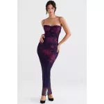 Elevate your evening wear with our Purple Print Fishtail Backless Dress. Order now and embrace your next special occasion with confidence and style!