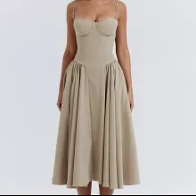 What sets this dress apart is its effortless style and versatility. The solid khaki color is both chic and timeless, allowing you to accessorize with bold jewelry or keep it simple for a more understated look. The backless design and spaghetti straps add a hint of allure, making it suitable for both day and night events.