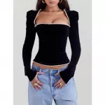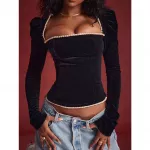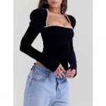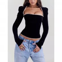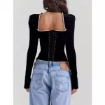 Introducing the ultimate blend of elegance and edge: our Elegant Black Backless Bandage T-Shirt. This autumn, step out in a piece that’s as daring as it is refined. With its striking square collar and alluring backless design, this T-shirt is a testament to the modern woman's wardrobe that embodies confidence and chic streetwear vibes.