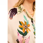 The set includes a long-sleeved, single-breasted shirt with a turn-down collar and ankle-length pants. The beautiful pleat decoration adds a touch of sophistication, while the vibrant print pattern ensures you stand out in the crowd. Crafted from high-quality polyester, the fabric is lightweight and perfect for warmer weather. The blend of synthetic fibers guarantees durability and a soft, silky feel against your skin.