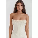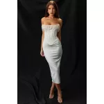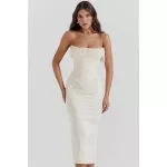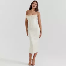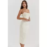 This dress stands out for its blend of sexy and elegant elements. The off-shoulder, strapless design is both bold and chic, perfect for those who want to showcase their style with confidence. The mid-calf length adds a touch of sophistication, making it suitable for more formal occasions while still being flirty enough for a night out. Its natural fiber composition ensures breathability, keeping you comfortable throughout the evening.
