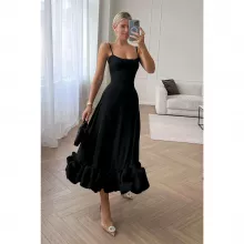 Crafted from high-quality polyester, this dress boasts a beautiful silhouette that flatters every figure. The non-stretch fabric ensures a structured look, while the spaghetti straps and sleeveless design keep you cool and comfortable. The mid-calf length and A-line silhouette add a touch of elegance, making it suitable for both casual and semi-formal events.