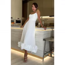 What sets our White Floral Summer A-Line Sleeveless Party Dress apart is its combination of simplicity and sophistication. The solid white color exudes purity and freshness, while the floral design adds a hint of femininity and charm. The bohemian style infuses a relaxed yet stylish vibe, making it a must-have for your summer wardrobe.