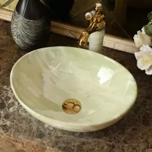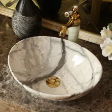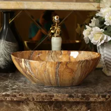 What makes this wash basin special is its combination of beauty and practicality. The hand-painted marble finish provides a unique touch that sets it apart from standard sinks. Each basin is crafted with attention to detail, ensuring a unique piece of art for your bathroom. The high-quality ceramic material guarantees durability and long-lasting use, while the oval shape offers a comfortable and spacious washing area. Elevate your bathroom design with the Ceramic Oval Marble Wash Basin. Its European-inspired artistry and modern functionality make it a must-have for any home. Don't miss out on the opportunity to enhance your bathroom with this beautiful and practical basin. Order yours today and experience the perfect blend of art and utility. Bring elegance and functionality to your bathroom with the Ceramic Oval Marble Wash Basin. Click to add this exquisite piece to your cart and transform your bathroom into a luxurious retreat.
