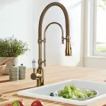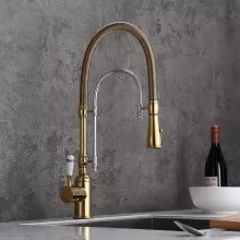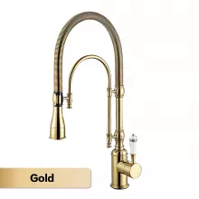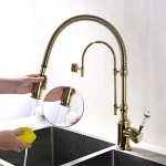 Transform your kitchen into a luxurious haven with our Gold Brass Kitchen Faucet. This beautifully crafted faucet combines the charm of a retro design with the practicality of modern features. Its polished brass finish adds a touch of sophistication, making it a stunning centerpiece for any kitchen island or sink.