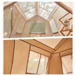 Our camping cabin tent is made from high-quality materials to withstand various weather conditions. The outer tent is constructed with 150D Oxford cloth, coated with waterproof PU2000MM, ensuring you stay dry during unexpected rain showers. The inner tent features 190T polyester with PA450MM, offering excellent breathability and comfort. The bottom of the tent is also made of 150D Oxford cloth with waterproof PU2000MM, providing additional protection from damp ground.