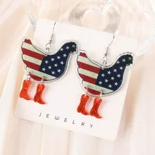 Celebrate in Style with Charming Flag Flowers Booted Chicken Acrylic Drop Earrings