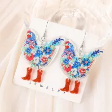 Charming Flag Flowers Booted Chicken Acrylic Drop Earrings