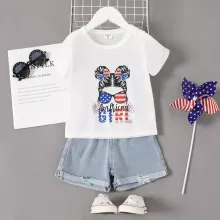 Use our battle tested marketing materials for Independence Day Toddler Girl Figure Print Tee and Ripped Denim Shorts Set