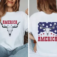 Use our battle tested marketing materials for Bull Skull American Flag Patriotic T-Shirt for 4th of July