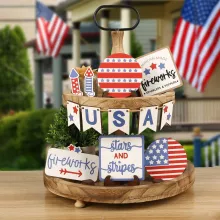Use our battle tested marketing materials for Rustic Patriotic Tiered Tray Decor Set for Independence Day