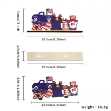 Our Patriotic Wooden Centerpiece includes a variety of festive designs, such as cars and inspiring words like "Let Freedom Ring," to enhance the holiday spirit in any room. Measuring 7 x 3.5 x 0.8 inches, this centerpiece is perfectly sized for display on tables, mantels, and more. The vibrant colors and intricate details make it a standout addition to your holiday decorations.