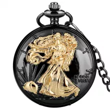Elevate your style and make a bold statement with the American Liberty Eagle Quartz Pocket Watch. This exquisite timepiece is not just a watch; it's a piece of art that you can carry with you. Don't miss the chance to own this unique accessory that combines history, elegance, and practicality. Order yours today and embrace the timeless elegance of the American Liberty Eagle Quartz Pocket Watch.
