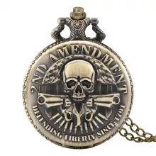 Looking for a memorable gift for a loved one? This Vintage Bronze Skull Liberty Pocket Watch is an excellent choice. Its unique design and meaningful inscription make it a thoughtful gift that will be treasured. Perfect for birthdays, holidays, or just because, this pocket watch is sure to impress and delight. Don't miss the opportunity to own this stunning piece of jewelry that combines historical significance with modern style. Order your Vintage Bronze Skull Liberty 2nd Amendment Military Pocket Watch Necklace today and celebrate your love for liberty and timeless fashion!